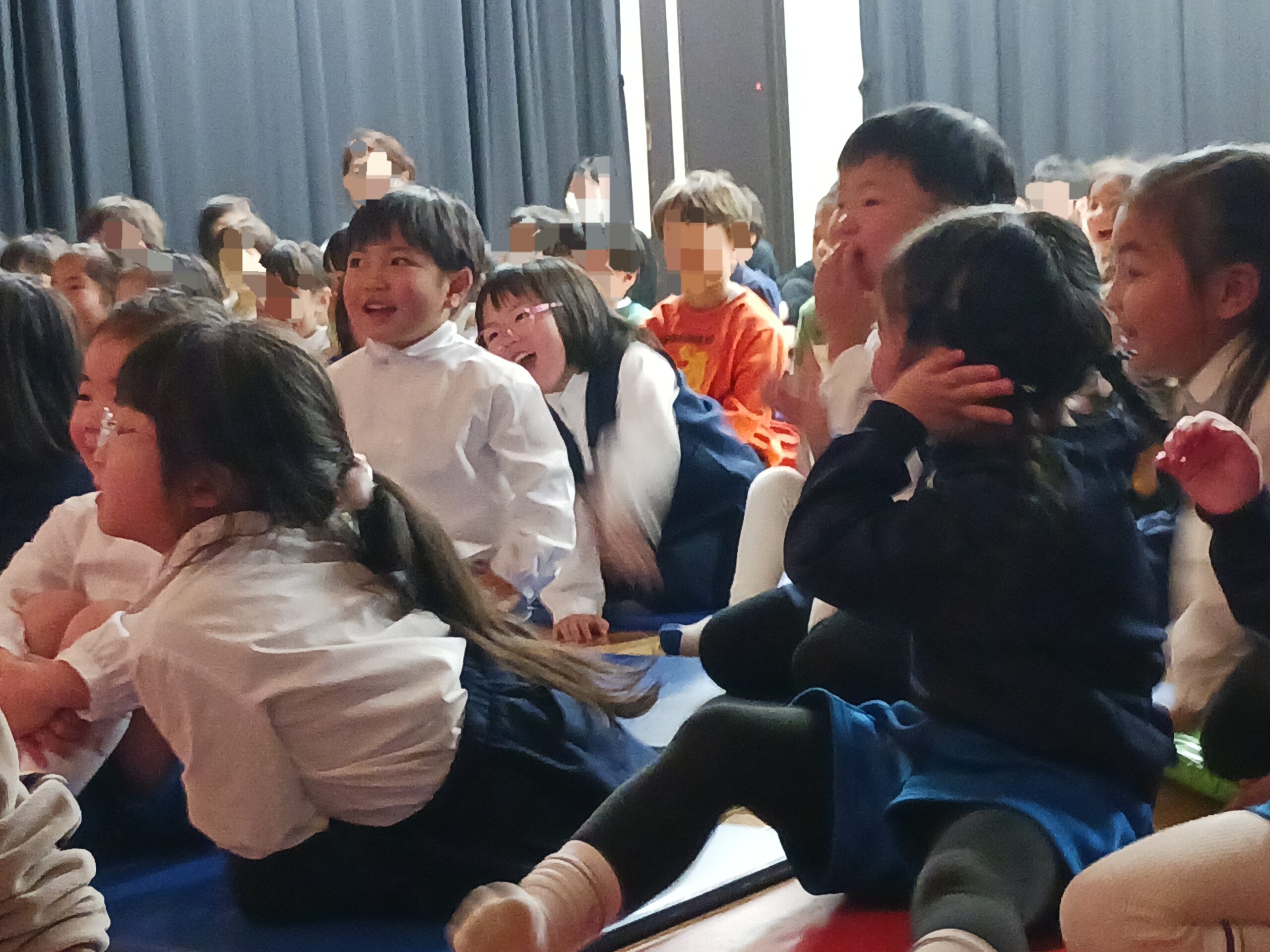 『めざめのもりのいちだいじ』『ねずみさんのパンツ』『おさるとぼうしとり』『でこぼこホットケーキ』の4つのお話を見せていただき、人形の動き一つひとつに注目したり、時に笑いがおきるなど、みんな楽しく鑑賞していました♡