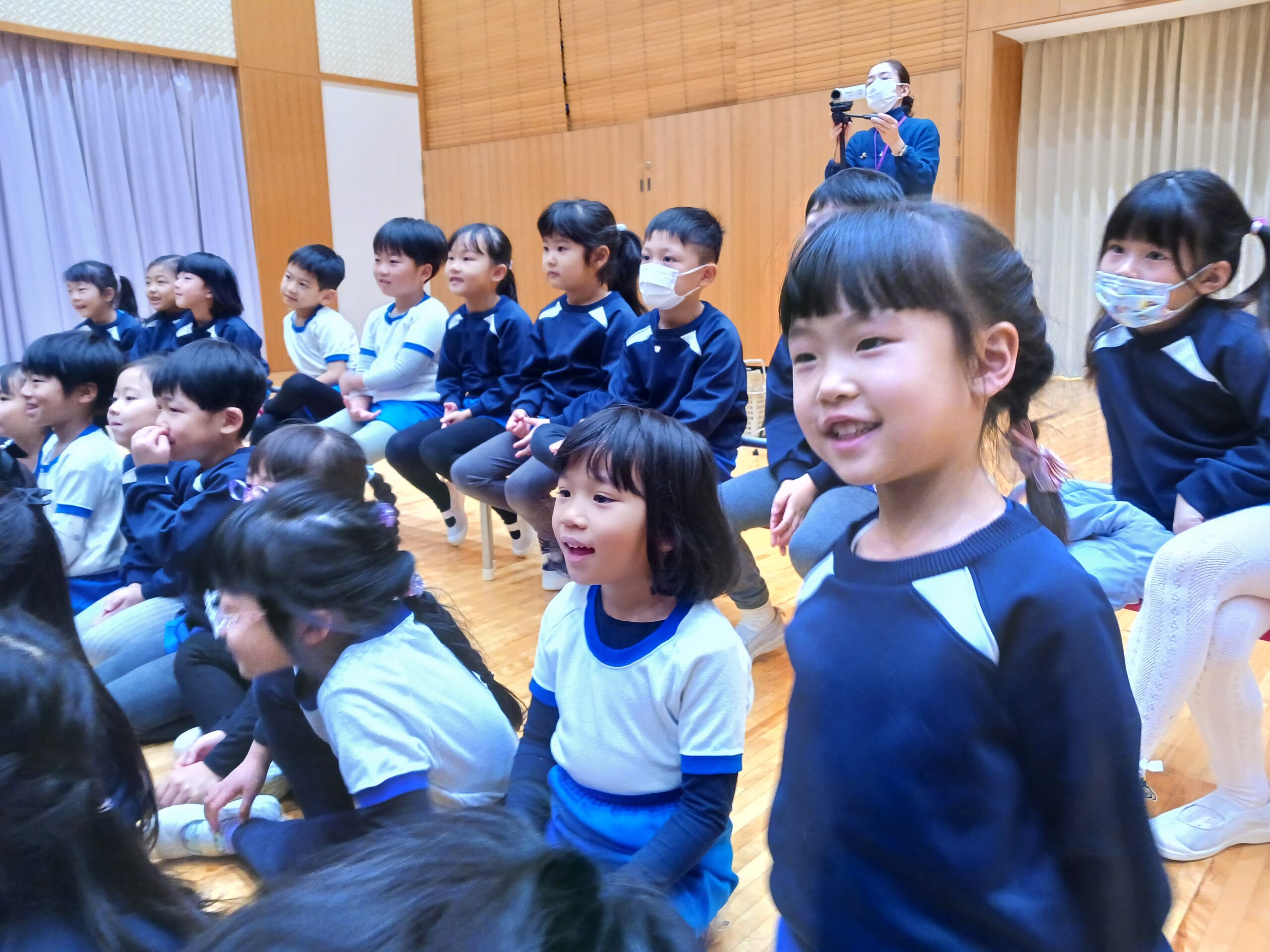 人形劇の前には、お姉さんたちのお歌とともに、タオルが様々な動物に変身していく『タオルシアター』がありました♪「これはペンギンだよ!」「うさぎかな?」と考えるのも楽しかったですね♡